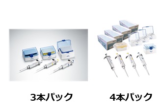 | 容量範囲 | 0.5~10μL 10~100μL 100~1,000μL | 2~20μL 20~200μL 100~1,000μL | 100~1,000μL 0.5~5mL 1~10mL | 0.1~2.5μL 2-20μL(黄色) 20-200μL 100-1,000μL |