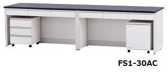 引き出しのついたサイド実験台にワゴンを組み合わせ、より機能性を向上させました。| シリーズ | FS1-9A | FS1-12AC | FS1-15AC |