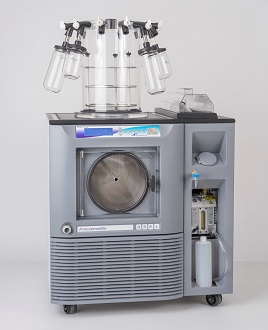 FreezeMobileシリーズは、最大32個のポートを持つマニホールドが取り付け可能なフラスコ用の大型凍結乾燥機です。| シリーズ | FreezeMobile |
