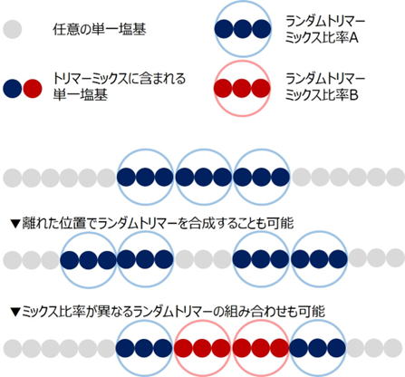 トリヌクレオチドを用いたランダムオリゴヌクレオチドライブラリーを販売しています。カスタム合成も対応可能です。