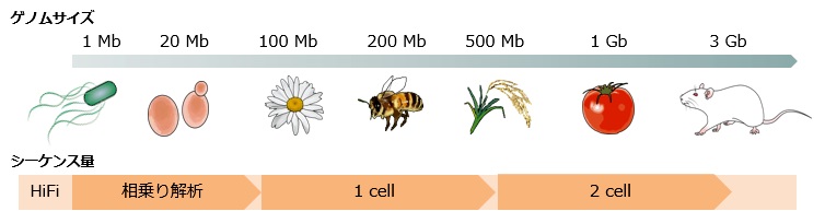 * シーケンスデータ量はゲノム品質、サンプルによって変わるため、データ量の保証は行っておりません。