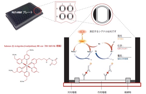 ECL法(電気化学発光法)による高感度イムノアッセイを行います。