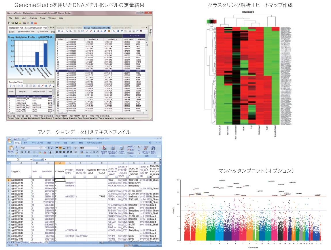 | データサイズ | Rawデータ: 630MB、GenomeStudioデータ: 2.5GB、 DNAメチル化定量データ: 1.7GB、サンプル間比較データ: 940MB |