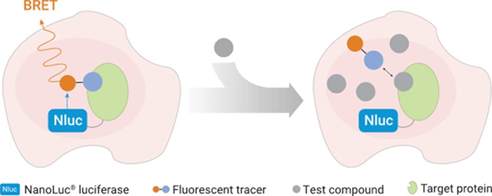 TM トレーサーへのエネルギー移転をベースとした生細胞内でのタンパク質相互作用を検出するアッセイです。生細胞内で発現されたNanoLuc