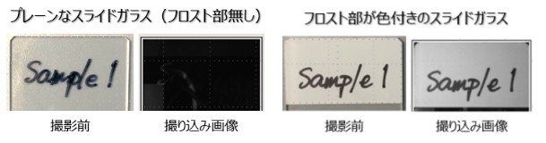 スライド情報の表記は、スライドラベルを用いるか、フロスト部が色付きのスライドガラスをご使用ください。(