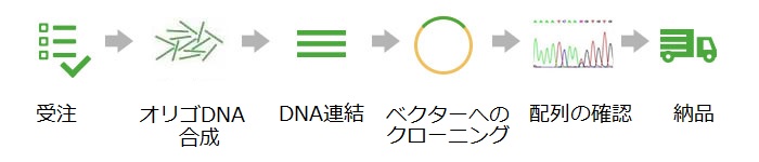 合成が完了した人工遺伝子はベクターにクローニングし、配列の確認後にお客様へ納品いたします。