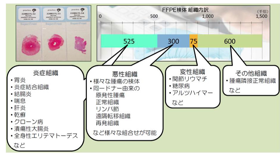 - 手術で摘出されることが少ない炎症系の組織や各種生検で採取された検体等、希少な検体が入手可能