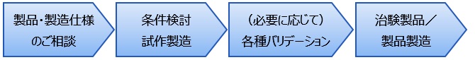 充塡に付随する工程(異物検査、包装など)に対して、品目特異的な条件検討・工程開発にも対応でき、これまでに培った豊富な経験と実績に基づく技術力で、お客様の目的とご要望に応じて幅広くご提供いたします。