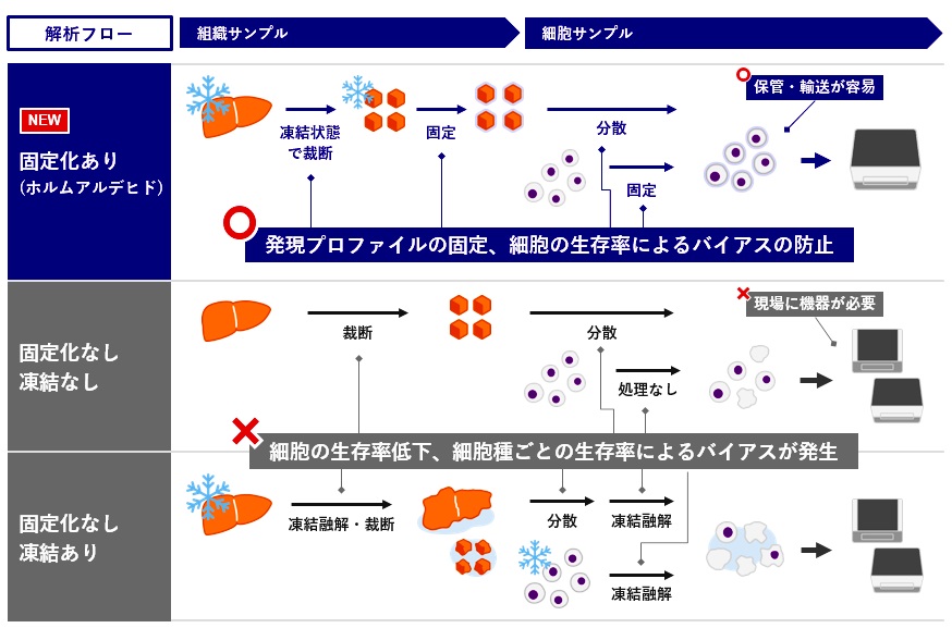 | 新鮮細胞 | Flex、3’RNA-Seq、レパトア解析、ロングリード、マルチオーム | 1.0×106 cells以上 | 生存率80%以上 | 37℃、5% CO2 | 細胞の最適な培養条件に従います。セルポーターのレンタルが可能です。 |