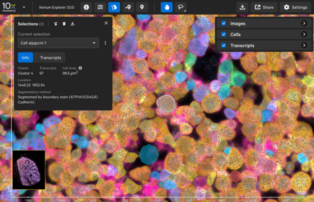 | Multimodal Cell Segmentationオプション (Xenium v1専用。Prime 5Kでは標準) 細胞膜や細胞質を染色する試薬キットを追加で使用することにより、より正確に細胞境界を決定することが可能になります。詳しくは詳細情報ページをご確認ください。 |
