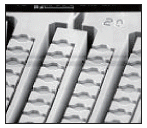 LC Sciences社のmicroRNA、non-coding RNAプロファイリング用DNAマイクロアレイプローブは、シリコンチップ上に刻まれた約3,700個のウェル(fig.2)内でin situ合成されます。in situ合成したアレイは、ピンスポットタイプやインクジェットタイプのアレイに比べてスポット-スポット間、アレイ-アレイ間のばらつきが減少し、均一なアレイが得られます。