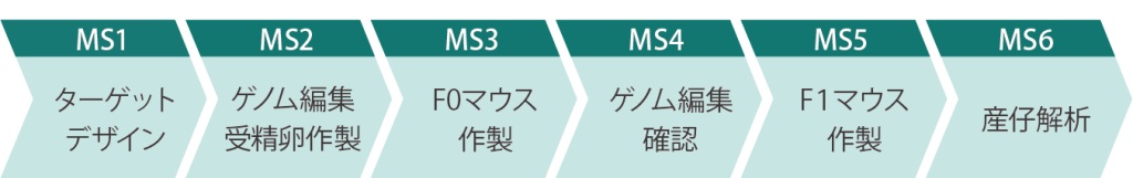 CRISPR/Cas9ゲノム編集技術を利用して、標的遺伝子に数塩基のランダムな塩基の欠損や挿入(indels)を導入した遺伝子改変マウス(ノックアウトマウス)を作製する受託サービスです。遺伝子情報、マウス系統などをお伝えいただければ、セツロテックで、ターゲットデザイン~ゲノム編集受精卵作製・移植~産仔のゲノム編集確認~交配によるF1マウス作製まですべて担当します。臨床などの他業務でお忙しい方やゲノム編集に詳しくない方、マウス飼育設備の維持管理が難しい方でも、ご自身の研究にあった遺伝子改変マウスをお手軽に作製可能です。また、F2ホモマウスでの納品や試験のカスタマイズ、ゲノム編集後の各種解析にも喜んで対応します。
