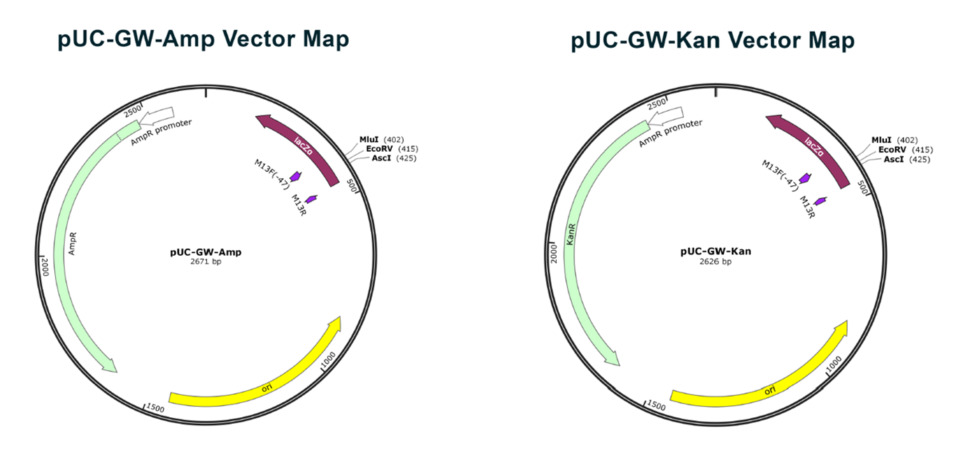 下記の標準ベクター(pUC-GW)へのクローニングは無料で対応させていただきます。(