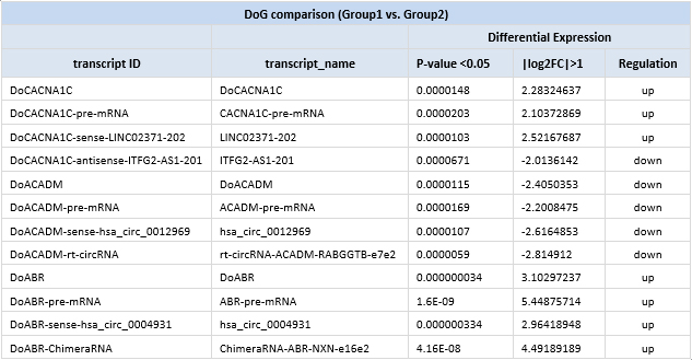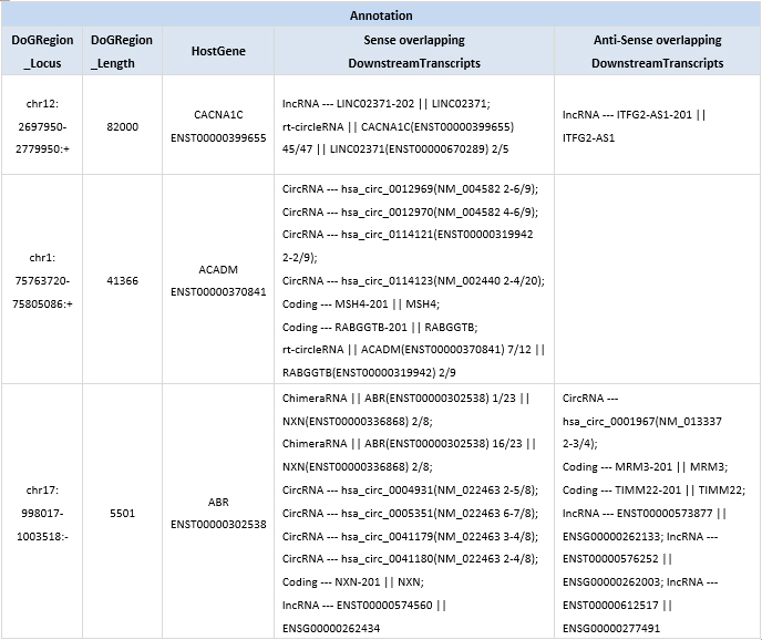 | DoG downstream targets | mRNAs/LncRNAs | exon-exon junction |