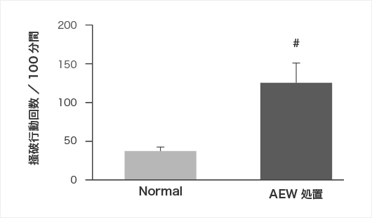 | 4) 7日間のAEW処置の翌日に、掻破行動をビデオで録画し、目視にて掻破行動回数を測定する。 |