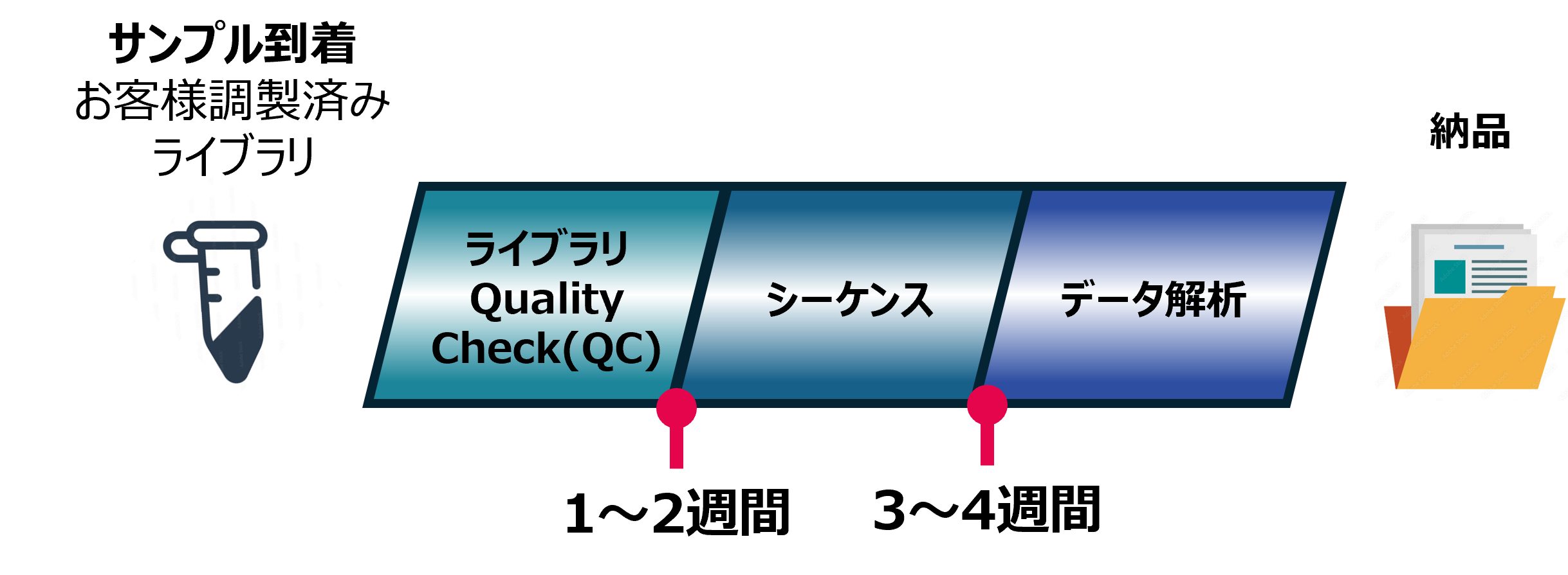 | Run Onlyライブラリシーケンス | お問い合わせ | 通常納期: サンプル到着からRaw data納品を平均3~4週間で実施(fig.1) NovaSeq X Plusスピードプランで進行した場合の納期: サンプル到着からRaw data納品を10営業日以内で実施(fig.2) |