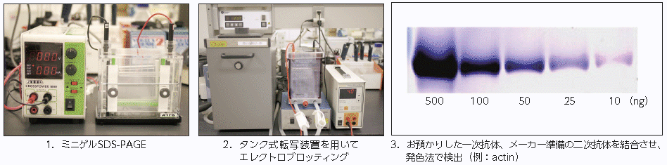 お預りしたサンプルを用いて電気泳動、ウェスタンブロット、検出までを行うサービスです。