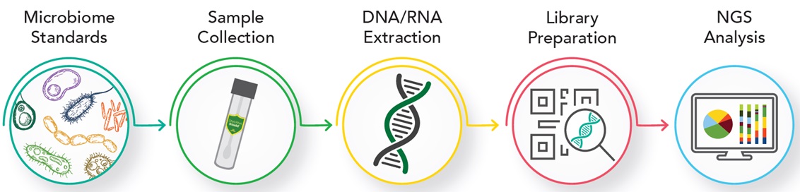 - 微生物叢標準品および、試料の前処理・保存、核酸精製、NGSライブラリーの構築の各ステップにZymoBIOMICSシリーズの高品質かつ検証済みの微生物叢研究用試薬を用いることで、バイアスや外来性DNAの混入がなく、信頼性の高い試料調製を行えます。