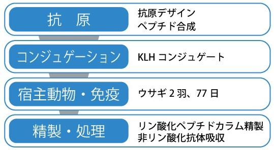 | 力価保証プラン | 通常のペプチド抗原による抗体作製と同様に、抗原ペプチドに対する力価を保証いたします。翻訳後修飾部位への特異性は保証されませんが、安価に翻訳後修飾抗体作製にチャレンジすることが可能です。