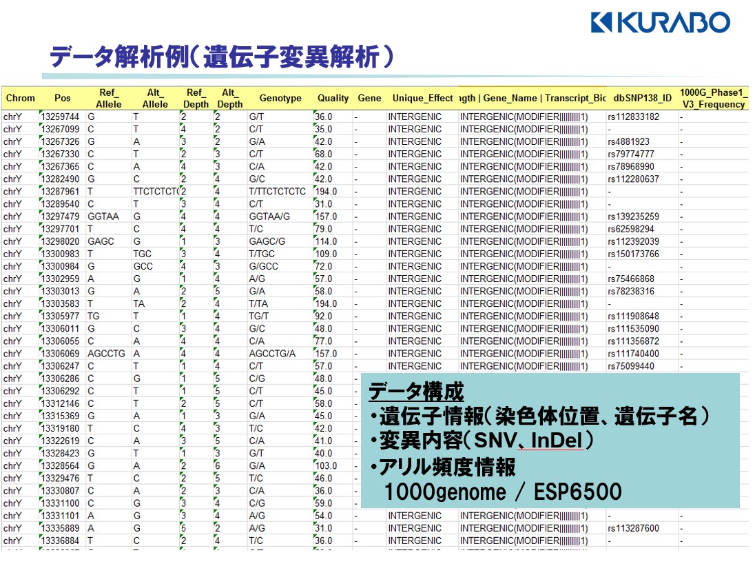 ヒトの場合は変異解析以外にも、染色体の構造変異、コピー数変異の解析が可能です。(