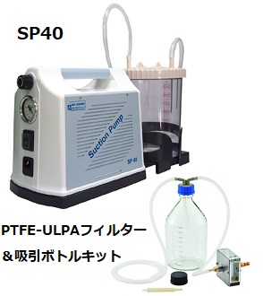 | 構成品 | 吸引器本体、シリコンチューブ(S)接続口、吸引ボトル(SP20:500cc、SP30:1000cc、SP40:4000cc)、シリコンチューブ(S)8×12φ 50cm、シリコンチューブ(L)8×12φ 100cm、吸引圧計、吸引圧調整ダイヤル、電源スイッチ、吸引ボトル取付部、電源コード接続口、ヒューズボックス、電源コード 長さ 約1.5m | ||