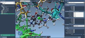生物学向けツールも多数搭載しており、ワンクリックで受容体・リガンド・リガンド結合部位・水分子等の選択を行うことができます。また、アミノ酸配列に基づいたタンパク質構造のアライメントやラマチャンドランプロットの生成、SNFG(Symbol Nomenclature for Glycans)に基づいた糖鎖の表示も可能です。