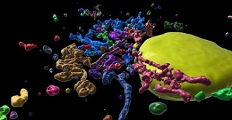 細胞膜染色されたデータの細胞を分離、1細胞単位で小胞数を比較