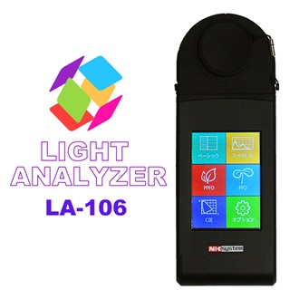 | 測定可能項目 | 1.照度 / フートキャンドル(fc) 2.相関色温度・CCT 3.C.I.E色度座標 (1) CIE 1931 x,y 座標 (2)CIE 1976 U.C.S u’,v’ 座標 4.△x, △y, △u’, △v’ 5.Δuv(デューブ) 6.主波長(λd) 7.励起純度 8.演色性評価数(CRI/R1 to R15) 9.スペクトル分布図(SPD) 10.ピーク波長(λp) 11.ピーク波長値(λpV) 12.放射照度(350nm to 800nm)(W/m)13. 光量子束密度 PPFD(400nm to 700nm) PFD-R(600nm to 700nm) PFD-G (500nm to 600nm) PFD-B (400nm to 500nm) PFD(350nm to 800nm) PFD-UV(350nm to 400nm) PFD-FR (700 nm to 800nm) |