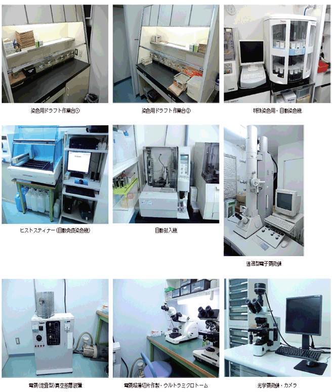 | ・被検材料 | :一般臓器の他、硬組織(骨・歯)、ステント材料、インプラント材料、培養細胞、ヒストアレイ標本など各種材料でお預かりいたします。 | |