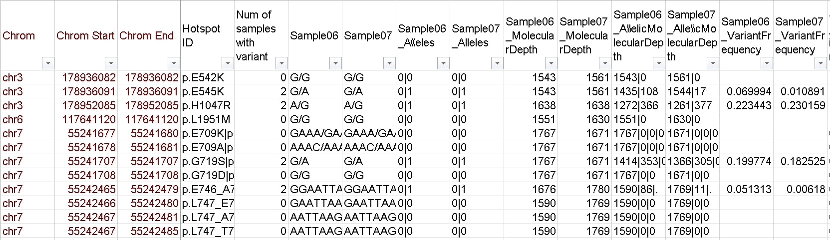 乳癌における150以上のSNV/Short InDel、TP53のコーディング領域、下記3遺伝子のCNVをターゲット。 【主な対象SNV/Short InDel】 PIK3CA:E545K, H1047R AKT1:E17K ESR1:抗エストロゲン耐性に関与する変異 TP53:機能喪失変異 ERBB2:抗HER2療法の感受性に関与する変異 【CNV対象遺伝子】 CCND1、ERBB2、FGFR1 |