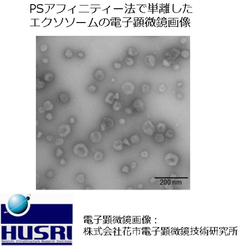 PSアフィニティー法を用いたエクソソームの単離サービスに電子顕微鏡解析もセットにしたパッケージサービスを提供しています。
