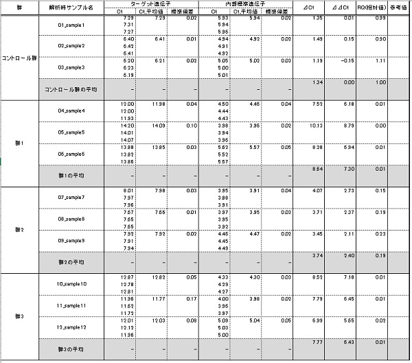 - スクリーニング試験、予備試験等で得られたターゲット遺伝子の定量評価に