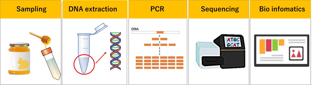 - ハチミツはDNAの分解が進みやすく分析が難しい試料です。またDNAが含まれている花粉は植物によって特徴が異なる細胞壁に格納されており、最適なDNA抽出手法を選択することが大切です。バイオインサイト社は多くのハチミツ分析事例を蓄積しており、最適な実験手法でのご報告が可能です。(fig.2)