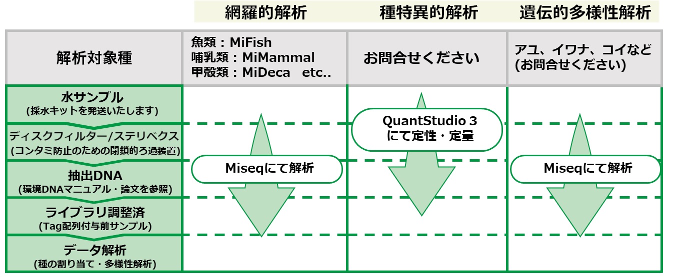 | 環境DNA解析 | お問い合わせ | お問い合わせ |
