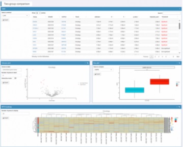 統計解析を用いた群間のタンパク質発現比較、発現変動が上位のタンパク質の抽出、クラスタリング、パスウェイ解析、データの可視化(散布図、クラスタリングなど)をご提供します。解析結果は、理研ジェネシス社オリジナルのデータ閲覧ソフトウエア「Riken genesis Visualizer for Proteome」で閲覧いただけます。(