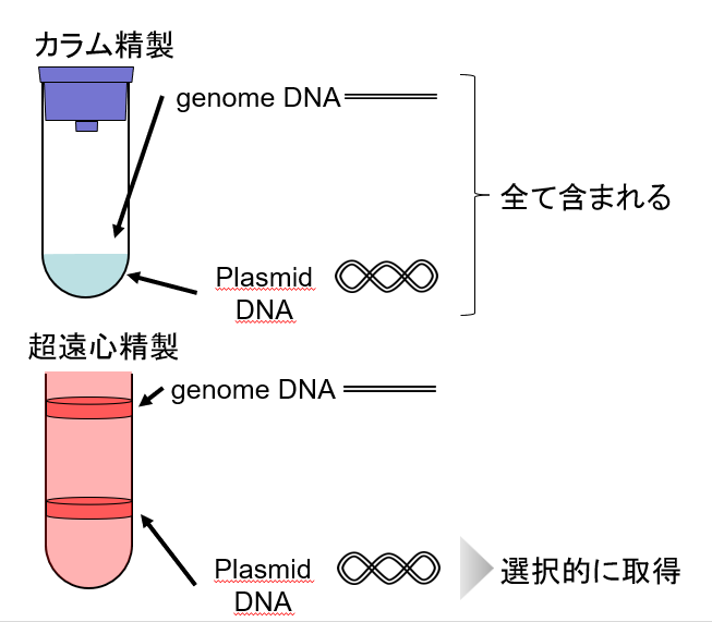 塩化セシウムエチジウムブロマイド密度勾配超遠心法にて精製を行っていますのでccc純度の高いプラスミドをお届けいたします。