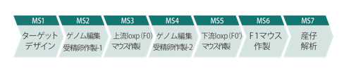 - F1マウス作出で変異遺伝子の次世代への伝播を確認