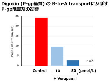 fig.3 評価例:Digoxin(P-gp基質)のB-to-A Transportに及ぼすP-gp阻害剤の影響