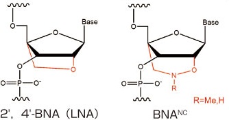 NCはLNAの特性を高めた新しい架橋化核酸です。