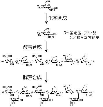酵素法と化学合成法を組み合わせて複雑な糖鎖を合成します