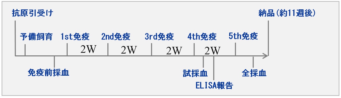 一般的なフロイント系アジュバントを使用し、ウサギ2匹への免疫でポリクローナル抗体を作製するプランです。