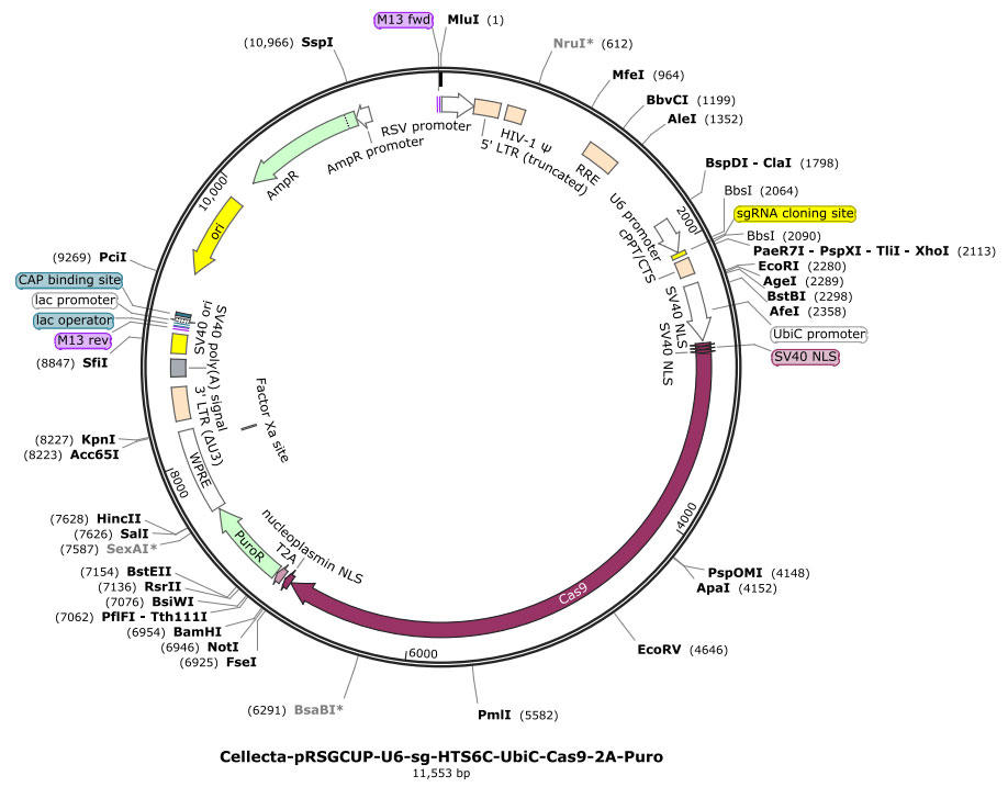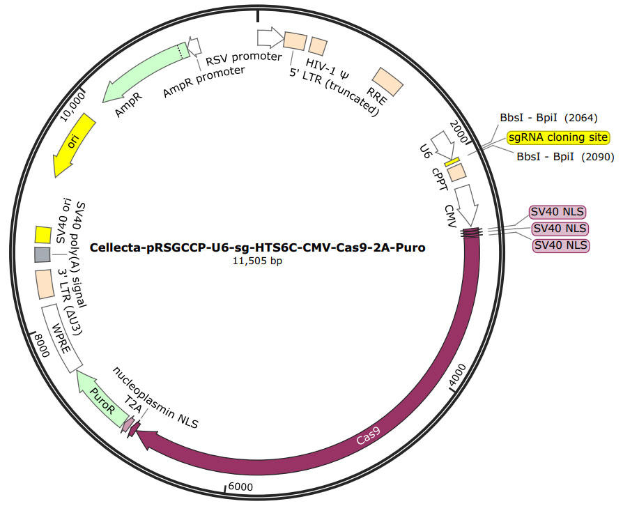 - Cas9プロモーターはCMVとUbiCから選択可能
